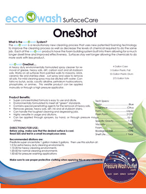 {"id":9658568525,"title":"ONE SHOT DEGREASER by ECOWASH","handle":"8496-one-shot-degreaser","description":"\u003cp\u003e\u003cspan\u003eA heavy duty environmentally formulated industrial spray cleaner for removal of grease, heavy soils, dirt, carbon soot and all stubborn soils. Works on all surfaces from painted walls to masonry, brick, ceramic tile and stainless steel. Just spray and wipe to remove all soils. For mild cleaning spray may be diluted with water. Contains no butyls, acids, caustic alkaline, petroleum hydrocarbons, phosphates, or amines. This versatile product can be applied manually or through a high-pressure applicator. Great for industrial and commercial cleaning applications.\u003c\/span\u003e\u003c\/p\u003e\n\u003cp\u003e\u003cstrong\u003e\u003cspan style=\"color: #0000ff;\"\u003eOne gallon makes 5 gallons then dilute according to cleaning needs.....so the product gets diluted twice.\u003c\/span\u003e\u003c\/strong\u003e\u003c\/p\u003e\n\u003cp\u003e\u003cstrong\u003e\u003cspan style=\"text-decoration: underline;\"\u003eUse at:\u003c\/span\u003e\u003c\/strong\u003e\u003c\/p\u003e\n\u003cp\u003e\u003cspan\u003e1 part One Shot to 5 - 10 parts Water for \u003cstrong\u003eEXTRA\u003c\/strong\u003e heavy-duty cleaning\u003c\/span\u003e\u003c\/p\u003e\n\u003cp\u003e\u003cspan\u003e1 part One Shot to 15 - 20 parts Water for \u003cstrong\u003eHEAVY\u003c\/strong\u003e duty cleaning\u003c\/span\u003e\u003c\/p\u003e\n\u003cp\u003e\u003cspan\u003e1 part One Shot to 40 - 60 parts Water for \u003cstrong\u003eNORMAL\u003c\/strong\u003e cleaning\u003c\/span\u003e\u003c\/p\u003e\n\u003cp\u003e\u003cspan\u003eAvailable in 1 Gallon, Case of 4 Gallons, 5 Gallon Pail or 55 Gallon Drum sizes. See \u003ca href=\"https:\/\/www.pressurewashoutlet.com\/pages\/free-shipping-policy\"\u003e\u003cspan style=\"color: #2b00ff;\"\u003eFREE FREIGHT POLICY\u003c\/span\u003e\u003c\/a\u003e for drum orders.\u003c\/span\u003e\u003c\/p\u003e\n\u003cp\u003e \u003c\/p\u003e\n\u003cp\u003e\u003cspan\u003eIf this doesn't seem to match your needs, take a look at some other degreasers we offer like:\u003c\/span\u003e\u003c\/p\u003e\n\u003cp\u003e\u003cstrong\u003e\u003ca href=\"https:\/\/www.pressurewashoutlet.com\/collections\/f9\/products\/f9-double-eagle\"\u003eF9 Double Eagle\u003c\/a\u003e\u003c\/strong\u003e\u003c\/p\u003e\n\u003cp\u003e\u003cstrong\u003e\u003ca href=\"https:\/\/www.pressurewashoutlet.com\/collections\/concrete-cleaners\/products\/concrete-cleaner-5-gallon\"\u003eConcrete Cleaner\u003c\/a\u003e\u003c\/strong\u003e\u003c\/p\u003e\n\u003cp\u003e\u003cbr\u003e\u003c\/p\u003e","published_at":"2017-04-17T10:47:58-04:00","created_at":"2017-04-17T10:57:49-04:00","vendor":"EcoWash","type":"Soaps and Chemicals","tags":["concrete degreasers","degreaser","eco-wash","gas station cleaning","georgia power wash store","georgia pressure wash store","industrial degreasers","north american pressure wash outlet","North Georgia pressure wash supplies","One-Shot","power wash equipment","pressure wash equipment","pressure wash supply store"],"price":2900,"price_min":2900,"price_max":104500,"available":true,"price_varies":true,"compare_at_price":null,"compare_at_price_min":0,"compare_at_price_max":0,"compare_at_price_varies":false,"variants":[{"id":36099439885,"title":"1 Gallon (8496)","option1":"1 Gallon (8496)","option2":null,"option3":null,"sku":"8496","requires_shipping":true,"taxable":true,"featured_image":{"id":23578450957,"product_id":9658568525,"position":1,"created_at":"2017-04-17T11:17:16-04:00","updated_at":"2024-11-12T12:53:10-05:00","alt":"Industrial Degreasers available at North American Pressure Wash Outlet","width":1500,"height":1459,"src":"\/\/pressurewashoutlet.com\/cdn\/shop\/products\/Ecowash_One_Shot_Degreaser_at_North_American_Pressure_Wash_Outlet.gif?v=1731433990","variant_ids":[36099439885,39874059789,39874059853,39874059917]},"available":true,"name":"ONE SHOT DEGREASER by ECOWASH - 1 Gallon (8496)","public_title":"1 Gallon (8496)","options":["1 Gallon (8496)"],"price":2900,"weight":3629,"compare_at_price":null,"inventory_quantity":-190,"inventory_management":"shopify","inventory_policy":"continue","barcode":"","featured_media":{"alt":"Industrial Degreasers available at North American Pressure Wash Outlet","id":217738215447,"position":1,"preview_image":{"aspect_ratio":1.028,"height":1459,"width":1500,"src":"\/\/pressurewashoutlet.com\/cdn\/shop\/products\/Ecowash_One_Shot_Degreaser_at_North_American_Pressure_Wash_Outlet.gif?v=1731433990"}},"requires_selling_plan":false,"selling_plan_allocations":[]},{"id":39874059853,"title":"Case of 4 Gallons (8497)","option1":"Case of 4 Gallons (8497)","option2":null,"option3":null,"sku":"8497","requires_shipping":true,"taxable":true,"featured_image":{"id":23578450957,"product_id":9658568525,"position":1,"created_at":"2017-04-17T11:17:16-04:00","updated_at":"2024-11-12T12:53:10-05:00","alt":"Industrial Degreasers available at North American Pressure Wash Outlet","width":1500,"height":1459,"src":"\/\/pressurewashoutlet.com\/cdn\/shop\/products\/Ecowash_One_Shot_Degreaser_at_North_American_Pressure_Wash_Outlet.gif?v=1731433990","variant_ids":[36099439885,39874059789,39874059853,39874059917]},"available":true,"name":"ONE SHOT DEGREASER by ECOWASH - Case of 4 Gallons (8497)","public_title":"Case of 4 Gallons (8497)","options":["Case of 4 Gallons (8497)"],"price":11400,"weight":14515,"compare_at_price":null,"inventory_quantity":4,"inventory_management":"shopify","inventory_policy":"continue","barcode":"","featured_media":{"alt":"Industrial Degreasers available at North American Pressure Wash Outlet","id":217738215447,"position":1,"preview_image":{"aspect_ratio":1.028,"height":1459,"width":1500,"src":"\/\/pressurewashoutlet.com\/cdn\/shop\/products\/Ecowash_One_Shot_Degreaser_at_North_American_Pressure_Wash_Outlet.gif?v=1731433990"}},"requires_selling_plan":false,"selling_plan_allocations":[]},{"id":39874059789,"title":"5 Gallon Pail (8498)","option1":"5 Gallo