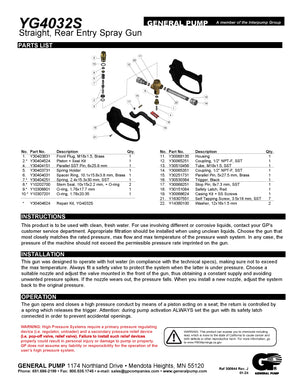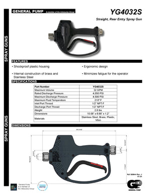 HYDRO-EXCAVATION HI-FLOW STRAIGHT GUN MODEL YG4032S (3120)