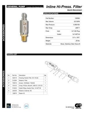INLINE FILTER by GENERAL PUMP - 1/4" QC PLUG X 1/4" MPT OUT - (6321) – North American Pressure Wash Outlet