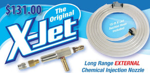 {"id":10385447437,"title":"X-JET NOZZLE - THE ORIGINAL","handle":"x-jet-nozzles","description":"\u003cp\u003e\u003cspan face=\"Cambria\" style=\"font-family: Cambria;\"\u003e\u003cspan\u003eX-Jet pressure wash nozzles have become very popular in recent years. These nozzles inject and proportion soaps, chemicals and liquids at high or low pressure without going through your machine's pump. For those of you into terminology, this method of chemical injection is referred to as \"downstream injection\" because the introduction of chemicals occurs AFTER the machine's pump. \u003c\/span\u003e\u003c\/span\u003e\u003cb\u003e\u003cspan face=\"Cambria\" style=\"font-family: Cambria;\"\u003e\u003cspan\u003eDownstream injection\u003c\/span\u003e\u003c\/span\u003e\u003c\/b\u003e\u003cspan face=\"Cambria\" style=\"font-family: Cambria;\"\u003e\u003cspan\u003e, in many cases, is preferred rather than \"upstream injection\" which occurs BEFORE the pump and means that any chemicals used will run through pump, hoses and gun. Caustic or corrosive liquids, like bleach, will eventually damage costly internal components.\u003cbr\u003e\u003cbr\u003eX-JET's can be used with hot or cold water pressure washers from 1000 PSI to 6000 PSI. X-Jet nozzles come in \"sizes\". The size refers to the\u003c\/span\u003e\u003c\/span\u003e\u003cb\u003e\u003cspan face=\"Cambria\" style=\"font-family: Cambria;\"\u003e\u003cspan\u003e internal orifice\u003c\/span\u003e\u003c\/span\u003e\u003c\/b\u003e\u003cspan face=\"Cambria\" style=\"font-family: Cambria;\"\u003e\u003cspan\u003e of the nozzle. Choosing the correct size will allow for the appropriate chemical draw and the maximum shooting distance.\u003cbr\u003e\u003cbr\u003eSo besides the method of injection and the avoidance of caustics through your equipment, let's look at some other reasons to use the X-Jet nozzle. \u003c\/span\u003e\u003c\/span\u003e\u003cb\u003e\u003cspan face=\"Cambria\" style=\"font-family: Cambria;\"\u003e\u003cspan\u003eThe nozzle is designed to project chemicals and other liquids to vertical heights of 30 feet or more.\u003c\/span\u003e\u003c\/span\u003e\u003c\/b\u003e\u003cspan face=\"Cambria\" style=\"font-family: Cambria;\"\u003e \u003c\/span\u003e\u003cspan face=\"Cambria\" style=\"font-family: Cambria;\"\u003e\u003cem\u003e\u003c\/em\u003eIt is similar to a shooter tip.\u003c\/span\u003e\u003cb\u003e\u003cspan face=\"Cambria\" style=\"font-family: Cambria;\"\u003e\u003cspan\u003e \u003c\/span\u003e\u003c\/span\u003e\u003c\/b\u003e\u003cspan face=\"Cambria\" style=\"font-family: Cambria;\"\u003e\u003cspan\u003eFor those in the residential market, this nozzle can truly make a difference between staying on the ground or needing a ladder or scaffolding. Ladders are the best way for you to fall and become injured. \u003cbr\u003e\u003cbr\u003eDo you want to use a low-pressure wash technique for roof washing but don't want to spend $7000 on a special soft-pressure rig? The X-Jet nozzle, with practice, can be used to broadcast soaps and chemicals across a roof structure with very little pressure allowing you to accomplish the same end result with a much smaller investment. \u003c\/span\u003e\u003c\/span\u003e\u003cb\u003e\u003cspan face=\"Cambria\" style=\"font-family: Cambria;\"\u003e\u003cspan\u003eThe X-Jet nozzles are affordable\u003c\/span\u003e\u003c\/span\u003e\u003c\/b\u003e\u003cspan face=\"Cambria\" style=\"font-family: Cambria;\"\u003e\u003cspan\u003e.\u003cbr\u003e\u003cbr\u003eSome contractors, when working on residential flat work like driveways and sidewalks, will use the X-Jet nozzle to broadcast chemicals across the surface. We use our \u003c\/span\u003e\u003c\/span\u003e\u003cb\u003e\u003ci\u003e\u003cspan face=\"Cambria\" style=\"font-family: Cambria;\"\u003e\u003cspan\u003e House \u0026amp; Roof Wash\u003c\/span\u003e\u003c\/span\u003e\u003c\/i\u003e\u003c\/b\u003e\u003cspan face=\"Cambria\" style=\"font-family: Cambria;\"\u003e\u003cspan\u003e and the soap mixture gets a little foamy when applied with the X-Jet nozzle. This gives it great cling to the surface during the dwell time period. \u003cstrong\u003e\u003ca href=\"https:\/\/www.pressurewashoutlet.com\/products\/8521-ecowash-house-roof-wash-1-gallon-size\"\u003eIf you need a dilution chart that combines the X-Jet and our House and Roof Wash, click here.\u003c\/a\u003e\u003c\/strong\u003e\u003cbr\u003e\u003c\/span\u003e\u003c\/span\u003e\u003c\/p\u003e\n\u003cp\u003e\u003cspan face=\"Cambria\" style=\"font-family: Cambria;\"\u003e\u003cspan\u003eX-Jet nozzles come in sizes and also models. The \"\u003cstrong\u003eOriginal\u003c\/strong\u003e\" model has the long-range nozzle, close-up nozzle, proportioners \u0026amp; chemical hose. The \"\u003cstrong\u003eM5\u003c\/strong\u003e\" model incorporated the long-range nozzle and close-up nozzle in one unit which still utilizes the proportioners \u0026amp; chemical hose. The last model is called the \"\u003cstrong\u003eDS Twist\u003c\/strong\u003e\" which looks like the M5 model and utilizes the machine's downstream injector.\u003c\/span\u003e\u003c\/span\u003e\u003c\/p\u003e\n\u003cp\u003e\u003cspan face=\"Cambria\" style=\"font-family: Cambria;\"\u003e\u003cspan\u003eThe \"Original\" and \"M5\" nozzles inject soaps and chemicals AFTER the pump, gun and hoses. The \"DS Twist\" nozzles inject soaps BEFORE the hoses and gun so over time, caustics will wear on these parts. The \"DS Twist\" acts as a shooter tip for those using a downstream injection method and eliminates the need to tote the chemical bucket. Apply detergent and rinse up to 4 stories high. \u003c\/span\u003e\u003c\/span\u003e\u003c\/p\u003e\n\u003cp\u003e\u003cspan face=\"Cambria\" style=\"font-family: Cambria;\"\u003e\u003cspan\u003eRemember, that there is no right answer.....choose the nozzle for your set-up and your needs. If you want to discuss your needs, feel free to contact us and we can help you decide.\u003c\/span\u003e\u003c\/span\u003e\u003c\/p\u003e\n\u003cp