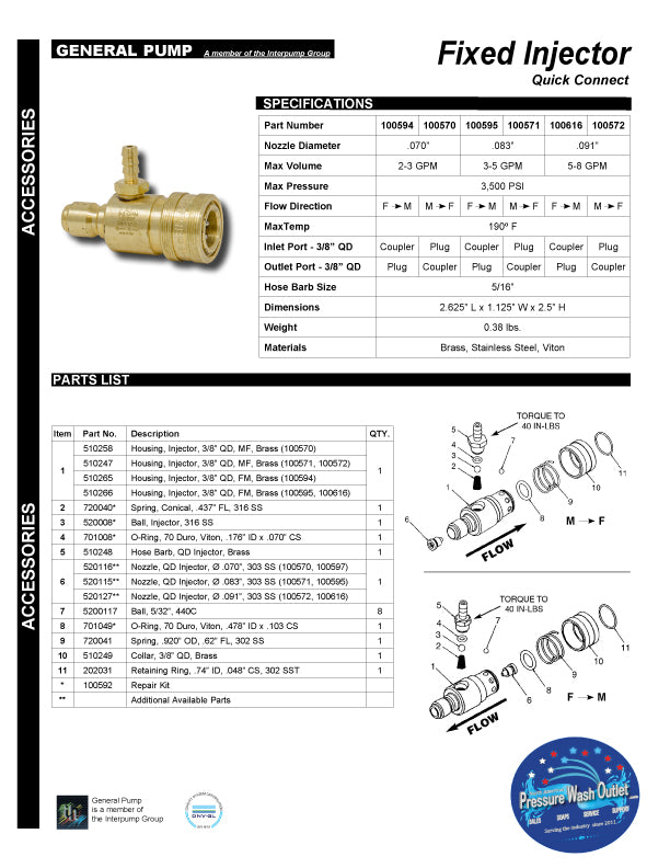 CHEMICAL INJECTOR W QC by GENERAL PUMP – North American Pressure Wash Outlet