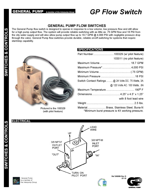 {"id":4284142465,"title":"100329 FLOW SWITCH W\/PILOT (3022)","handle":"100329-flow-switch-w-pilot-16gpm-5000psi","description":"\u003cp\u003eThe 100329-flow switch by GP is designed to operate in response to low volume, low pressure flow and still allow for a high pump output.\u003c\/p\u003e\n\u003cul\u003e\n\u003cli\u003ereed switch\u003c\/li\u003e\n\u003cli\u003eactivates w .75 GPM flow @ 18 PSI\u003c\/li\u003e\n\u003cli\u003emount VERTICALLY\u003c\/li\u003e\n\u003cli\u003ePhoenix flow switch\u003c\/li\u003e\n\u003cli\u003e16 GPM\u003c\/li\u003e\n\u003cli\u003e5000 PSI maximum\u003c\/li\u003e\n\u003cli\u003e190 degrees F maximum\u003c\/li\u003e\n\u003cli\u003e96\" lead wire\u003c\/li\u003e\n\u003cli\u003e1\/4\" pilot barb\u003c\/li\u003e\n\u003c\/ul\u003e\n\u003cp\u003ePilot Valve - 100331\u003c\/p\u003e","published_at":"2016-02-24T10:48:00-05:00","created_at":"2016-02-24T10:48:36-05:00","vendor":"General Pump","type":"Switches","tags":["100329","flow switch","georgia power wash store","georgia pressure wash store","industrial pressure washer","north american pressure wash outlet","North Georgia pressure wash supplies","parts for pressure washers","power wash equipment","pressure wash equipment","pressure wash parts delivered","pressure wash supply store","pressurewashpartsdelivered"],"price":26500,"price_min":26500,"price_max":26500,"available":true,"price_varies":false,"compare_at_price":null,"compare_at_price_min":0,"compare_at_price_max":0,"compare_at_price_varies":false,"variants":[{"id":12273685889,"title":"Default Title","option1":"Default Title","option2":null,"option3":null,"sku":"3022","requires_shipping":true,"taxable":true,"featured_image":null,"available":true,"name":"100329 FLOW SWITCH W\/PILOT (3022)","public_title":null,"options":["Default Title"],"price":26500,"weight":454,"compare_at_price":null,"inventory_quantity":0,"inventory_management":"shopify","inventory_policy":"continue","barcode":null,"requires_selling_plan":false,"selling_plan_allocations":[],"quantity_rule":{"min":1,"max":null,"increment":1}}],"images":["\/\/www.pressurewashoutlet.com\/cdn\/shop\/products\/100329_FLOW_SWITCH_W_PILOT.jpg?v=1732289487","\/\/www.pressurewashoutlet.com\/cdn\/shop\/products\/GP-RETAILER_720x_c2efd0aa-110d-42b5-b924-5a0674833008.jpg?v=1673579188","\/\/www.pressurewashoutlet.com\/cdn\/shop\/files\/100329-Flow.jpg?v=1706299881","\/\/www.pressurewashoutlet.com\/cdn\/shop\/files\/100329-Flow-page2.jpg?v=1706299962"],"featured_image":"\/\/www.pressurewashoutlet.com\/cdn\/shop\/products\/100329_FLOW_SWITCH_W_PILOT.jpg?v=1732289487","options":["Title"],"media":[{"alt":"100329 FLOW SWITCH W\/PILOT","id":22416458645551,"position":1,"preview_image":{"aspect_ratio":1.0,"height":600,"width":600,"src":"\/\/www.pressurewashoutlet.com\/cdn\/shop\/products\/100329_FLOW_SWITCH_W_PILOT.jpg?v=1732289487"},"aspect_ratio":1.0,"height":600,"media_type":"image","src":"\/\/www.pressurewashoutlet.com\/cdn\/shop\/products\/100329_FLOW_SWITCH_W_PILOT.jpg?v=1732289487","width":600},{"alt":null,"id":32680666628382,"position":2,"preview_image":{"aspect_ratio":1.0,"height":288,"width":288,"src":"\/\/www.pressurewashoutlet.com\/cdn\/shop\/products\/GP-RETAILER_720x_c2efd0aa-110d-42b5-b924-5a0674833008.jpg?v=1673579188"},"aspect_ratio":1.0,"height":288,"media_type":"image","src":"\/\/www.pressurewashoutlet.com\/cdn\/shop\/products\/GP-RETAILER_720x_c2efd0aa-110d-42b5-b924-5a0674833008.jpg?v=1673579188","width":288},{"alt":null,"id":32680636186910,"position":3,"preview_image":{"aspect_ratio":1.333,"height":360,"width":480,"src":"\/\/www.pressurewashoutlet.com\/cdn\/shop\/products\/hqdefault_75dab604-ef2d-4ae4-9a4f-bd625460cd08.jpg?v=1673578815"},"aspect_ratio":1.77,"external_id":"4gfl0tS_qxE","host":"youtube","media_type":"external_video"},{"alt":"100329 FLOW SWITCH W\/PILOT","id":37296182853918,"position":4,"preview_image":{"aspect_ratio":0.773,"height":792,"width":612,"src":"\/\/www.pressurewashoutlet.com\/cdn\/shop\/files\/100329-Flow.jpg?v=1706299881"},"aspect_ratio":0.773,"height":792,"media_type":"image","src":"\/\/www.pressurewashoutlet.com\/cdn\/shop\/files\/100329-Flow.jpg?v=1706299881","width":612},{"alt":"100329 FLOW SWITCH W\/PILOT","id":37296198648094,"position":5,"preview_image":{"aspect_ratio":0.773,"height":792,"width":612,"src":"\/\/www.pressurewashoutlet.com\/cdn\/shop\/files\/100329-Flow-page2.jpg?v=1706299962"},"aspect_ratio":0.773,"height":792,"media_type":"image","src":"\/\/www.pressurewashoutlet.com\/cdn\/shop\/files\/100329-Flow-page2.jpg?v=1706299962","width":612}],"requires_selling_plan":false,"selling_plan_groups":[],"content":"\u003cp\u003eThe 100329-flow switch by GP is designed to operate in response to low volume, low pressure flow and still allow for a high pump output.\u003c\/p\u003e\n\u003cul\u003e\n\u003cli\u003ereed switch\u003c\/li\u003e\n\u003cli\u003eactivates w .75 GPM flow @ 18 PSI\u003c\/li\u003e\n\u003cli\u003emount VERTICALLY\u003c\/li\u003e\n\u003cli\u003ePhoenix flow switch\u003c\/li\u003e\n\u003cli\u003e16 GPM\u003c\/li\u003e\n\u003cli\u003e5000 PSI maximum\u003c\/li\u003e\n\u003cli\u003e190 degrees F maximum\u003c\/li\u003e\n\u003cli\u003e96\" lead wire\u003c\/li\u003e\n\u003cli\u003e1\/4\" pilot barb\u003c\/li\u003e\n\u003c\/ul\u003e\n\u003cp\u003ePilot Valve - 100331\u003c\/p\u003e"}