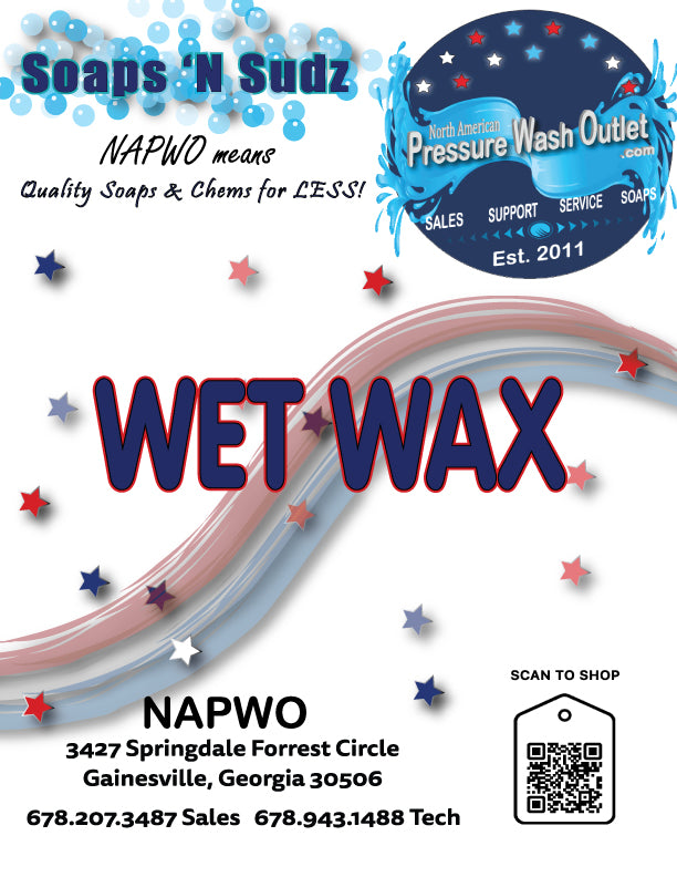 {"id":4284392321,"title":"WET WAX SPRAY WAX","handle":"soaps-n-sudz-wet-wax-1-gallon","description":"\u003cp\u003e\u003cb\u003e\u003cspan\u003eWet Wax Spray Wax \u003c\/span\u003e\u003c\/b\u003e\u003cspan\u003eis a \u003c\/span\u003e\u003cspan\u003eproprietary blend of carnauba wax and silicone polymers. Add this product to a house-wash or car-wash will give you the \"just waxed\" look for a short time period. Much like the \"cheater\" wax that is applied to your car during a car wash, this product is similar and gives the same-type of temporary results. It can also be applied during a secondary rinse.\u003c\/span\u003e\u003c\/p\u003e\n\u003cp\u003e\u003cspan\u003e\u003cspan style=\"text-decoration: underline;\"\u003eWet Wax provides a binding protective layer on any surface, promoting water repellency, beading, and lower water roll-off angle\u003c\/span\u003e. This reduces soil deposition and thus keeps the surfaces clean for a longer period of time. Wet Wax also contains UV inhibitors to further protect painted surfaces from harsh sun rays, prolonging the life of painted surfaces. \u003c\/span\u003e\u003c\/p\u003e\n\u003cp\u003e\u003cspan\u003eThe length of time that it will last will differ due to environmental differences but it's safe to say that the shine will last a week to a few weeks. This product is also great for vinyl and aluminum siding. \u003c\/span\u003e\u003c\/p\u003e\n\u003cp\u003e\u003cspan\u003eRemember this can be added directly to your soap mix (Grime Shine, Ultra Grime Shine or EcoWash) or if you prefer, it can also be used during the rinse process. And literally...a few capfuls of this product is all that's needed to a 5 gallon pail.\u003c\/span\u003e\u003c\/p\u003e\n\u003cp\u003e\u003cspan style=\"text-decoration: underline;\"\u003e\u003cstrong\u003eMix and Application Instructions\u003c\/strong\u003e\u003c\/span\u003e\u003c\/p\u003e\n\u003cp\u003e\u003cspan\u003eApply Wet Wax at a dilution of 1 fluid oz. per gallon, up to 1 fluid oz. per 1.5 gallon. Suitable for application via pump up sprayer or downstream injection system. Use in conjunction with secondary rinse process to leave a binding protective shield on the surface. Do not use at dilutions stronger than recommended or results will not be favorable. \u003c\/span\u003e\u003c\/p\u003e\n\u003cp\u003e\u003ca href=\"https:\/\/cdn.shopify.com\/s\/files\/1\/1183\/1612\/files\/WetWaxMSDS.pdf?18015841425396903355\"\u003e\u003cspan style=\"color: #0000ff;\" data-mce-style=\"color: #0000ff;\"\u003e\u003cstrong\u003e\u003cspan style=\"text-decoration: underline;\" data-mce-style=\"text-decoration: underline;\"\u003eClick Here for product Safety Data Sheet (SDS)\u003c\/span\u003e\u003c\/strong\u003e\u003c\/span\u003e\u003c\/a\u003e\u003c\/p\u003e","published_at":"2016-02-24T10:54:00-05:00","created_at":"2016-02-24T10:54:23-05:00","vendor":"Soaps 'N Sudz","type":"Soaps and Chemicals","tags":["car wash wax","cheater wax","georgia pressure wash store","georgia pressure wash supplies","north american pressure wash outlet","North Georgia pressure wash supplies","pressure wash equipment","pressure wash parts delivered","pressure wash supply store","wet wax"],"price":2989,"price_min":2989,"price_max":14045,"available":true,"price_varies":true,"compare_at_price":null,"compare_at_price_min":0,"compare_at_price_max":0,"compare_at_price_varies":false,"variants":[{"id":12273993153,"title":"1 Gallon (8304)","option1":"1 Gallon (8304)","option2":null,"option3":null,"sku":"8304","requires_shipping":true,"taxable":true,"featured_image":{"id":40350556586270,"product_id":4284392321,"position":1,"created_at":"2023-01-13T15:53:42-05:00","updated_at":"2023-01-13T15:53:44-05:00","alt":null,"width":612,"height":792,"src":"\/\/www.pressurewashoutlet.com\/cdn\/shop\/products\/itd-WET-WAX.jpg?v=1673643224","variant_ids":[12273993153,39876530573]},"available":true,"name":"WET WAX SPRAY WAX - 1 Gallon (8304)","public_title":"1 Gallon (8304)","options":["1 Gallon (8304)"],"price":2989,"weight":3629,"compare_at_price":null,"inventory_quantity":-110,"inventory_management":null,"inventory_policy":"deny","barcode":null,"featured_media":{"alt":null,"id":32685842465054,"position":1,"preview_image":{"aspect_ratio":0.773,"height":792,"width":612,"src":"\/\/www.pressurewashoutlet.com\/cdn\/shop\/products\/itd-WET-WAX.jpg?v=1673643224"}},"requires_selling_plan":false,"selling_plan_allocations":[]},{"id":39876530573,"title":"5 Gallons (8305)","option1":"5 Gallons (8305)","option2":null,"option3":null,"sku":"8305","requires_shipping":true,"taxable":true,"featured_image":{"id":40350556586270,"product_id":4284392321,"position":1,"created_at":"2023-01-13T15:53:42-05:00","updated_at":"2023-01-13T15:53:44-05:00","alt":null,"width":612,"height":792,"src":"\/\/www.pressurewashoutlet.com\/cdn\/shop\/products\/itd-WET-WAX.jpg?v=1673643224","variant_ids":[12273993153,39876530573]},"available":true,"name":"WET WAX SPRAY WAX - 5 Gallons (8305)","public_title":"5 Gallons (8305)","options":["5 Gallons (8305)"],"price":14045,"weight":18144,"compare_at_price":null,"inventory_quantity":1,"inventory_management":"shopify","inventory_policy":"continue","barcode":null,"featured_media":{"alt":null,"id":32685842465054,"position":1,"preview_image":{"aspect_ratio":0.773,"height":792,"width":612,"src":"\/\/www.pressurewashoutlet.com\/cdn\/shop\/products\/itd-WET-WAX.jpg?v=1673643224"}},"requires_selling_plan":false,"selling_plan_allocations":[]}],"images":["\/\/www.pressurewashoutlet.com\/cdn\/shop\/products\/itd-WET-WAX.jpg?v=1673643224","\/\/www.pressurewashoutlet.com\/cdn\/shop\/products\/WETWAX-shopcode.png?v=1673643224","\/\/www.pressurewashoutlet.com\/cdn\/shop\/products\/thank-you_d30792b9-45d9-4dc7-8cdd-593dc99dbdc8.jpg?v=1673643224"],"featured_image":"\/\/www.pressurewashoutlet.com\/cdn\/shop\/products\/itd-WET-WAX.jpg?v=1673643224","options":["Size"],"media":[{"alt":null,"id":32685842465054,"position":1,"preview_image":{"aspect_ratio":0.773,"height":792,"width":612,"src":"\/