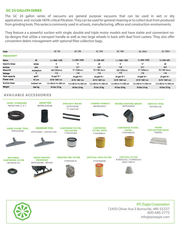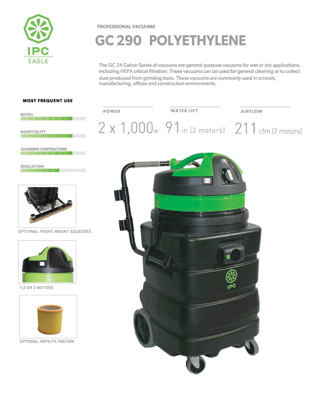{"id":4284373569,"title":"IPC EAGLE VACUUM SYSTEM (7100)","handle":"ipc-eagle-vac-system","description":"\u003cp\u003e\u003ciframe width=\"500\" height=\"315\" src=\"https:\/\/www.youtube.com\/embed\/B-1UA5IGONQ\" frameborder=\"0\" allowfullscreen=\"\"\u003e\u003c\/iframe\u003e\u003c\/p\u003e\n\u003cp\u003e\u003cspan face=\"Cambria\" size=\"2\" style=\"font-family: Cambria; font-size: small;\"\u003e\u003cspan\u003eThis industrial grade wet vac is \u003cspan style=\"text-decoration: underline;\"\u003esuper durable and efficient\u003c\/span\u003e. Constructed mostly of polyethylene , it will stand up to strong cleaners. It has a 24-gallon capacity with an auto pump-out feature that discharges up to 40 GPM. The \u003cstrong\u003eGC290 model\u003c\/strong\u003e features a two-motor vacuum with 211 cfm. This unit rolls effortlessly on 4 caster units. It is lighter than most units on the market making it easily portable. The unit comes with:\u003cbr\u003e\u003cbr\u003e\u003c\/span\u003e\u003c\/span\u003e\u003c\/p\u003e\n\u003ctable cellspacing=\"0\" cellpadding=\"0\" border=\"0\" style=\"width: 435.091px;\"\u003e\n\u003ctbody\u003e\n\u003ctr\u003e\n\u003ctd align=\"right\" style=\"width: 39px;\"\u003e\n\u003cul\u003e\n\u003cli\u003e\n\u003c\/li\u003e\n\u003c\/ul\u003e\n\u003c\/td\u003e\n\u003ctd style=\"width: 9px;\"\u003e\u003c\/td\u003e\n\u003ctd style=\"width: 384.091px;\"\u003e\n\u003cspan face=\"Cambria\" color=\"#000000\" size=\"2\" style=\"color: #000000; font-family: Cambria; font-size: small;\"\u003e\u003cspan\u003e50' 2-inch hose\u003c\/span\u003e\u003c\/span\u003e\u003cspan face=\"Cambria\" color=\"#000000\" size=\"2\" style=\"color: #000000; font-family: Cambria; font-size: small;\"\u003e\u003cspan\u003e\u003cbr\u003e\u003c\/span\u003e\u003c\/span\u003e\n\u003c\/td\u003e\n\u003c\/tr\u003e\n\u003ctr\u003e\n\u003ctd align=\"right\" style=\"width: 39px;\"\u003e\n\u003cul\u003e\n\u003cli\u003e\n\u003c\/li\u003e\n\u003c\/ul\u003e\n\u003c\/td\u003e\n\u003ctd style=\"width: 9px;\"\u003e\u003c\/td\u003e\n\u003ctd style=\"width: 384.091px;\"\u003e\n\u003cspan face=\"Cambria\" color=\"#000000\" size=\"2\" style=\"color: #000000; font-family: Cambria; font-size: small;\"\u003e\u003cspan\u003efloor squeegee which connects to most \u003c\/span\u003e\u003c\/span\u003e\u003cspan face=\"Cambria\" color=\"#000000\" size=\"2\" style=\"color: #000000; font-family: Cambria; font-size: small;\"\u003e\u003cspan\u003evacuum \u003cspan face=\"Cambria\" color=\"#000000\" size=\"2\" data-mce-fragment=\"1\"\u003esurface cleaners\u003c\/span\u003e\u003cspan face=\"Cambria\" color=\"#000000\" size=\"2\" data-mce-fragment=\"1\"\u003e\u003c\/span\u003e\u003c\/span\u003e\u003c\/span\u003e\n\u003c\/td\u003e\n\u003c\/tr\u003e\n\u003ctr\u003e\n\u003ctd style=\"width: 39px;\"\u003e\u003c\/td\u003e\n\u003ctd style=\"width: 9px;\"\u003e\u003c\/td\u003e\n\u003ctd style=\"width: 384.091px;\"\u003e\u003c\/td\u003e\n\u003c\/tr\u003e\n\u003c\/tbody\u003e\n\u003c\/table\u003e\n\u003cp\u003e\u003cspan face=\"Cambria\" size=\"2\" style=\"font-family: Cambria; font-size: small;\"\u003e\u003cspan\u003e\u003cbr\u003eBeing a two-stage vacuum, with each motor drawing 1000 watts, and the auto pump-out drawing 500 watts at 120 volts, you should be able to connect to most outlets or generators.\u003c\/span\u003e\u003c\/span\u003e\u003c\/p\u003e\n\u003cp\u003e\u003cspan style=\"font-size: small;\"\u003e\u003ca href=\"https:\/\/cdn.shopify.com\/s\/files\/1\/1183\/1612\/files\/Wet-Dry-Vacuum-Parts-Operating-Instructions-1-2020-1.pdf?v=1679943841\"\u003e\u003cspan style=\"text-decoration: underline;\"\u003e\u003cstrong\u003e\u003cspan face=\"Cambria\" size=\"2\" style=\"font-family: Cambria;\"\u003eClick Here for Product Manual\u003c\/span\u003e\u003c\/strong\u003e\u003c\/span\u003e\u003c\/a\u003e\u003c\/span\u003e\u003c\/p\u003e\n\u003cp\u003e \u003c\/p\u003e\n\u003ch2\u003e\u003cspan face=\"Cambria\" size=\"2\" style=\"font-family: Cambria; font-size: small;\"\u003eIf this system doesn't meet your needs, take a look at the reclaim systems by\u003ca href=\"https:\/\/www.pressurewashoutlet.com\/collections\/sirocco\"\u003e Sirocco.\u003c\/a\u003e\u003c\/span\u003e\u003c\/h2\u003e\n\u003cp\u003e \u003c\/p\u003e\n\u003cp\u003e \u003c\/p\u003e","published_at":"2016-02-24T10:53:00-05:00","created_at":"2016-02-24T10:53:57-05:00","vendor":"IPC Eagle","type":"Reclaim Equipment","tags":["atlanta pressure wash supplies","filtration","flood cleanup","flood relief","GC290","Hurricane Florence recovery","industrial pressure washer","IPC Eagle","north american pressure wash outlet","North Georgia pressure wash supplies","parts for pressure washers","power wash equipment","pressure wash equipment","pressure wash parts delivered","pressure wash pump","pressure wash pumps","pressure wash supply","pressure wash supply store","reclaim equipment","recovery","Vacuum"],"price":198900,"price_min":198900,"price_max":198900,"available":true,"price_varies":false,"compare_at_price":null,"compare_at_price_min":0,"compare_at_price_max":0,"compare_at_price_varies":false,"variants":[{"id":12273968897,"title":"Default Title","option1":"Default Title","option2":null,"option3":null,"sku":"7100","requires_shipping":true,"taxable":true,"featured_image":null,"available":true,"name":"IPC EAGLE VACUUM SYSTEM (7100)","public_title":null,"options":["Default Title"],"price":198900,"weight":18144,"compare_at_price":null,"inventory_quantity":1,"inventory_management":null,"inventory_policy":"deny","barcode":null,"requires_selling_plan":false,"selling_plan_allocations":[]}],"images":["\/\/www.pressurewashoutlet.com\/cdn\/shop\/products\/shopping.png?v=1586741980","\/\/www.pressurewashoutlet.com\/cdn\/shop\/products\/gc290.jpg?v=1679943271","\/\/www.pressurewashoutlet.com\/cdn\/shop\/products\/gc290-accessories.jpg?v=1679943271","\/\/www.pressurewashoutlet.com\/cdn\/shop\/files\/18880017_10211560014707880_1187511083874984546_o.jpg?v=1705949956"],"featured_image":"\/\/www.pressurewash