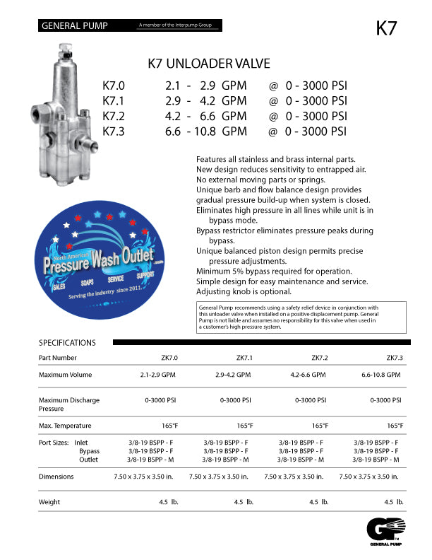 K-7 UNLOADERS - FLOW ACTUATED – North American Pressure Wash Outlet