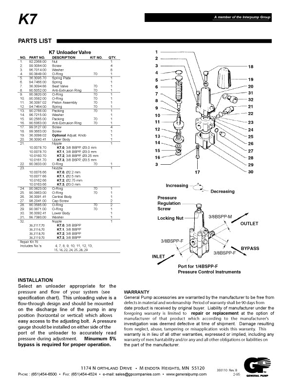 Consider the K7 unloaders from General Pump. These unloaders feature: