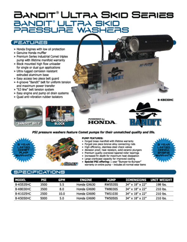 ULTRA SKID BANDIT 8.0 GPM PRESSURE WASHERS (7480.24) – North American Pressure Wash Outlet