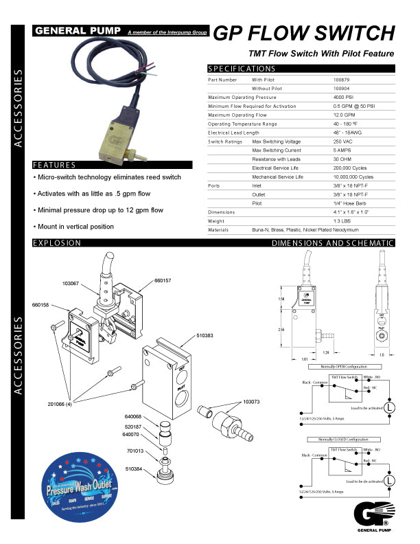 100879 FLOW SWITCH TMT, PILOT, 12 GPM (5193)