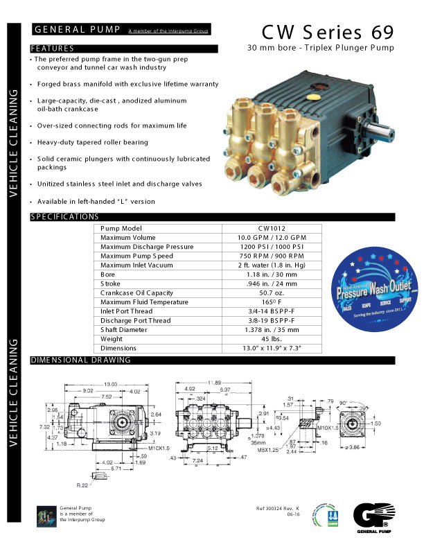 {"id":4284227329,"title":"CW1012 PUMP by GENERAL PUMP (4537)","handle":"cw1012-pump-12gpm-1000psi-900-rpm-35mm","description":"\u003cp\u003e\u003cspan style=\"text-decoration: underline;\"\u003e\u003cstrong\u003eSolid Shaft – General Pump CW 69 Series Features:\u003c\/strong\u003e\u003c\/span\u003e\u003c\/p\u003e\n\u003cul\u003e\n\u003cli\u003eTriplex plunger pump.\u003c\/li\u003e\n\u003cli\u003eThe preferred pump frame in the two\/gun prep conveyor and tunnel car wash industry.\u003c\/li\u003e\n\u003cli\u003e12 GPM\u003c\/li\u003e\n\u003cli\u003e1000 PSI\u003c\/li\u003e\n\u003cli\u003e900 RPM\u003c\/li\u003e\n\u003cli\u003e36 lb.\u003c\/li\u003e\n\u003cli\u003eForged brass manifold with exclusive lifetime warranty.\u003c\/li\u003e\n\u003cli\u003eLarge\/capacity, die\/cast, anodized aluminum oil\/bath crankcase.\u003c\/li\u003e\n\u003cli\u003eOver\/sized connecting rods for maximum life.\u003c\/li\u003e\n\u003cli\u003eHeavy\/duty tapered roller bearings.\u003c\/li\u003e\n\u003cli\u003eSolid ceramic plungers with continuously lubricated packings.\u003c\/li\u003e\n\u003cli\u003eUnitized stainless steel inlet and discharge valves.\u003c\/li\u003e\n\u003c\/ul\u003e\n\u003cp\u003e\u003cspan style=\"text-decoration: underline;\"\u003e\u003cstrong\u003eReplacement Kits Available\u003c\/strong\u003e\u003c\/span\u003e\u003c\/p\u003e\n\u003cp\u003e\u003cspan style=\"text-decoration: underline;\"\u003e\u003c\/span\u003e\u003cspan style=\"color: #0000ff;\"\u003e\u003ca href=\"https:\/\/parts-for-pressure-washers.myshopify.com\/products\/kit-62-check-valves-6\" style=\"color: #0000ff;\"\u003eValves - Kit 62\u003c\/a\u003e\u003c\/span\u003e\u003c\/p\u003e\n\u003cp\u003e\u003cspan style=\"color: #0000ff;\"\u003ePiston Oil Seal - Kit 37\u003c\/span\u003e\u003c\/p\u003e\n\u003cp\u003e\u003cspan style=\"color: #0000ff;\"\u003e\u003ca href=\"https:\/\/parts-for-pressure-washers.myshopify.com\/products\/kit-113-packing-assembly\" style=\"color: #0000ff;\"\u003ePackings - Kit 113\u003c\/a\u003e\u003c\/span\u003e\u003c\/p\u003e\n\u003cp\u003e\u003cspan style=\"color: #0000ff;\"\u003e\u003ca href=\"https:\/\/parts-for-pressure-washers.myshopify.com\/products\/kit-967-packing-assy-for-1-cylinder\" style=\"color: #0000ff;\"\u003ePackings with Brass - Kit 967\u003c\/a\u003e\u003c\/span\u003e\u003c\/p\u003e\n\u003cp\u003e\u003cspan style=\"color: #0000ff;\"\u003ePistons - 69040109\u003c\/span\u003e\u003c\/p\u003e\n\u003cp\u003e\u003cspan style=\"color: #0000ff;\"\u003eValve Caps - 98231200\u003c\/span\u003e\u003c\/p\u003e\n\u003cp\u003e\u003cspan style=\"color: #0000ff;\"\u003e\u003ca href=\"https:\/\/parts-for-pressure-washers.myshopify.com\/products\/kit-74-piston-bolt\" style=\"color: #0000ff;\"\u003ePiston Bolts - Kit 74\u003c\/a\u003e\u003c\/span\u003e\u003c\/p\u003e\n\u003cp\u003e\u003cspan style=\"color: #0000ff;\"\u003e\u003ca href=\"https:\/\/parts-for-pressure-washers.myshopify.com\/products\/kit-32-crankshaft-oil-seal\" style=\"color: #0000ff;\"\u003eCrank Oil Seal - Kit 32\u003c\/a\u003e\u003c\/span\u003e\u003c\/p\u003e","published_at":"2016-02-24T10:50:00-05:00","created_at":"2016-02-24T10:50:31-05:00","vendor":"General Pump","type":"Pumps","tags":["1000 PSI","12.0 GPM","900 RPM","CW1012","gainesville georgia","power wash equipment","pressure wash equipment"],"price":179122,"price_min":179122,"price_max":179122,"available":true,"price_varies":false,"compare_at_price":null,"compare_at_price_min":0,"compare_at_price_max":0,"compare_at_price_varies":false,"variants":[{"id":12273786113,"title":"Default Title","option1":"Default Title","option2":null,"option3":null,"sku":"4537","requires_shipping":true,"taxable":true,"featured_image":null,"available":true,"name":"CW1012 PUMP by GENERAL PUMP (4537)","public_title":null,"options":["Default Title"],"price":179122,"weight":16329,"compare_at_price":null,"inventory_quantity":1,"inventory_management":null,"inventory_policy":"deny","barcode":null,"requires_selling_plan":false,"selling_plan_allocations":[]}],"images":["\/\/pressurewashoutlet.com\/cdn\/shop\/products\/s-l300.jpg?v=1551931024","\/\/pressurewashoutlet.com\/cdn\/shop\/products\/series-69.jpg?v=1636653286","\/\/pressurewashoutlet.com\/cdn\/shop\/products\/GP-RETAILER_36cccefc-72a6-425d-84b2-4a6749366c6a.jpg?v=1551931024"],"featured_image":"\/\/pressurewashoutlet.com\/cdn\/shop\/products\/s-l300.jpg?v=1551931024","options":["Title"],"media":[{"alt":null,"id":55877271575,"position":1,"preview_image":{"aspect_ratio":1.364,"height":220,"width":300,"src":"\/\/pressurewashoutlet.com\/cdn\/shop\/products\/s-l300.jpg?v=1551931024"},"aspect_ratio":1.364,"height":220,"media_type":"image","src":"\/\/pressurewashoutlet.com\/cdn\/shop\/products\/s-l300.jpg?v=1551931024","width":300},{"alt":null,"id":22639469461551,"position":2,"preview_image":{"aspect_ratio":0.773,"height":792,"width":612,"src":"\/\/pressurewashoutlet.com\/cdn\/shop\/products\/series-69.jpg?v=1636653286"},"aspect_ratio":0.773,"height":792,"media_type":"image","src":"\/\/pressurewashoutlet.com\/cdn\/shop\/products\/series-69.jpg?v=1636653286","width":612},{"alt":null,"id":55877304343,"position":3,"preview_image":{"aspect_ratio":1.0,"height":500,"width":500,"src":"\/\/pressurewashoutlet.com\/cdn\/shop\/products\/GP-RETAILER_36cccefc-72a6-425d-84b2-4a6749366c6a.jpg?v=1551931024"},"aspect_ratio":1.0,"height":500,"media_type":"image","src":"\/\/pressurewashoutlet.com\/cdn\/shop\/products\/GP-RETAILER_36cccefc-72a6-425d-84b2-4a6749366c6a.jpg?v=1551931024","width":500}],"requires_selling_plan":false,"selling_plan_groups":[],"content":"\u003cp\u003e\u003cspan style=\"text-decoration: underline;\"\u003e\u003cstrong\u003eSolid Shaft – General Pump CW 69 Series Features:\u003c\/strong\u003e\u003c\/span\u003e\u003c\/p\u003e\n\u003cul\u003e\n\u003cli\u003eTriplex plunger pump.\u003c\/li\u003e\n\u003cli\u003eThe preferred pump frame in the two\/gun prep conveyor and tunnel car wash industry.\u003c\/li\u003e\n\u003cli\u003e12 GPM\u003c\/li\u003e\n\u003cli\u003