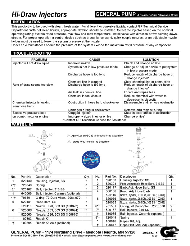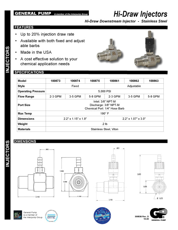 FIXED STAINLESS STEEL HIGH DRAW CHEMICAL INJECTORS by GENERAL PUMP