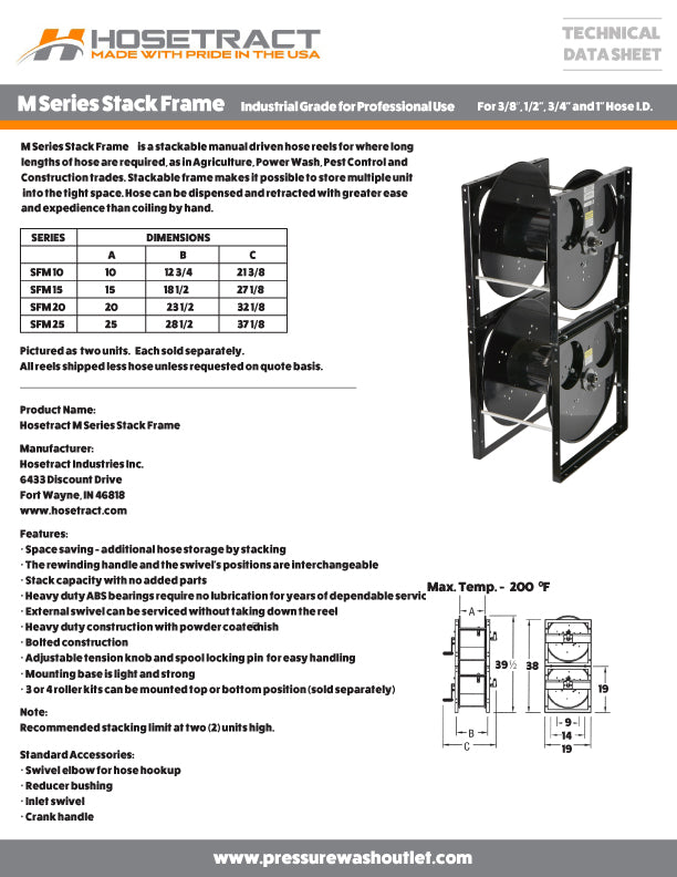 Hosetract Industries was formed in 1985 out of a need in the marketplace for trouble free, affordable hose retrieval devices. Hosetract grown into a respected quality leader in the marketplace. Hosetract operates from a new 45,000 square foot facility, located centrally in the U.S. which houses sales, engineering, manufacturing, and customer service. We are proud to carry Hosetract Hose Reels for their quality, and durability that you as our customer -  deserve.