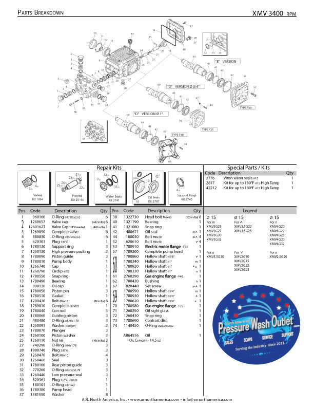 XMV3G30D-F24 PUMP by AR PUMPS (4832)